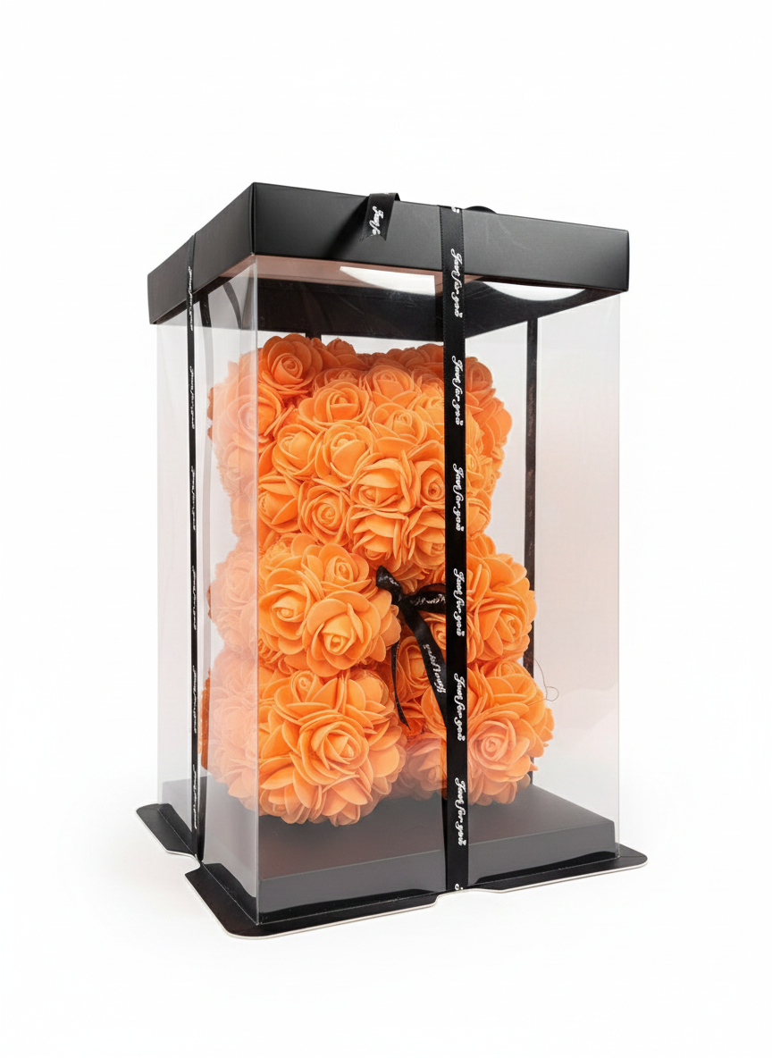 This elegant rose bear comes inside a clear display box, tied with a premium ribbon—ready to gift for birthdays, anniversaries, Valentine's Day, Mother’s Day, or any moment of love and appreciation.